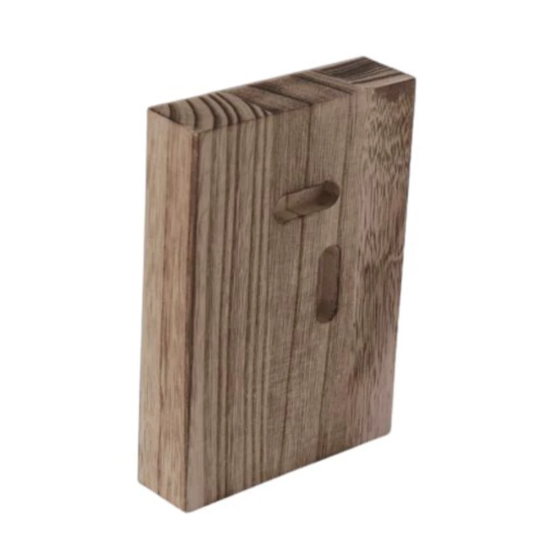 בלוק עץ, מכיל חור לתלייה על הקיר.