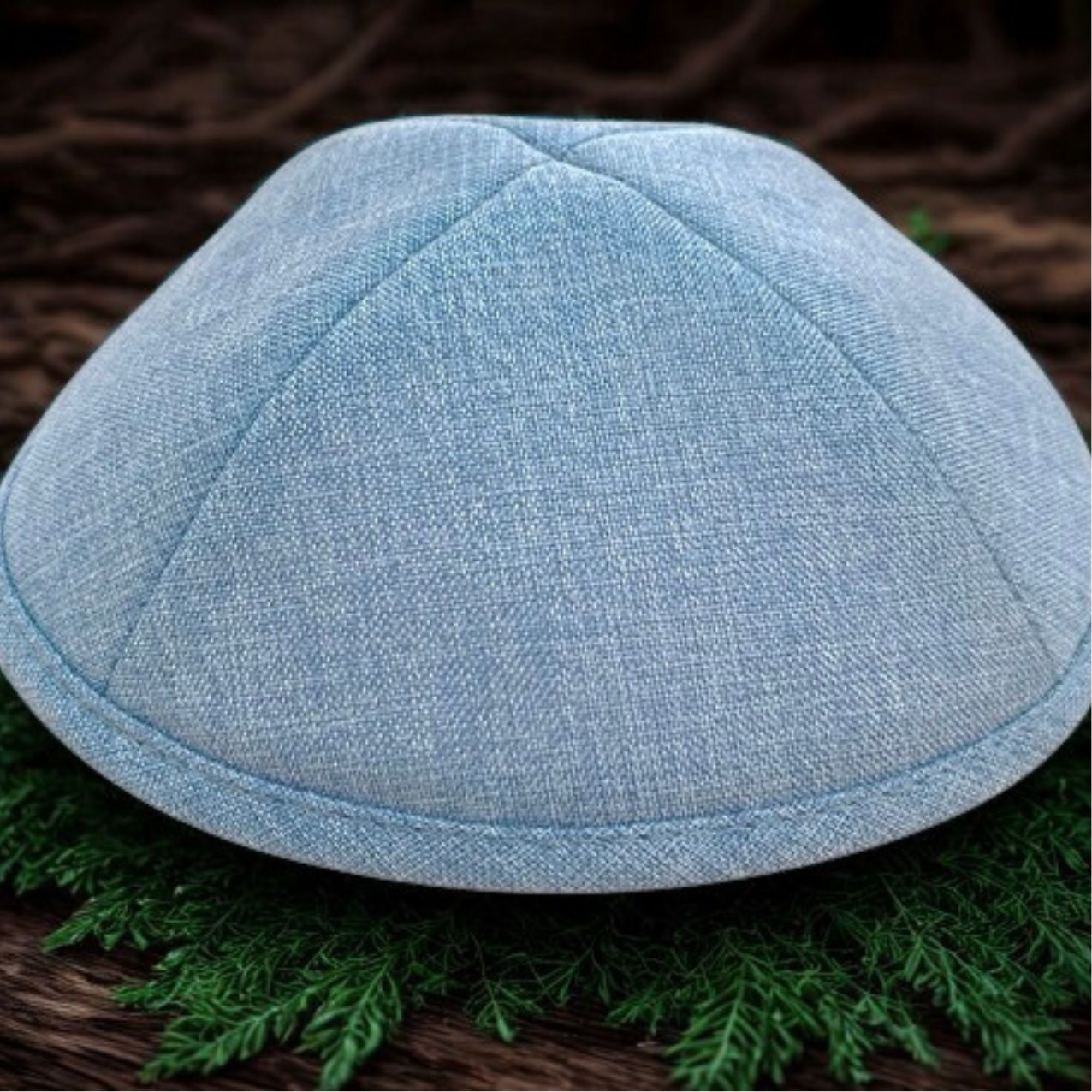 כיפה מהודרת משי פשתן כחול ספיר 17 ס"מ.