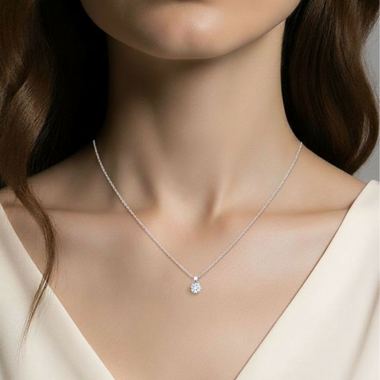 שרשרת עדינה מכסף אמיתי 925, עם תליון סוליטר מרשים המשובץ אבן זירקון איכותית AAAAA. מראה נקי, אלגנטי ועל זמני מושלם ליום יום ולערב.