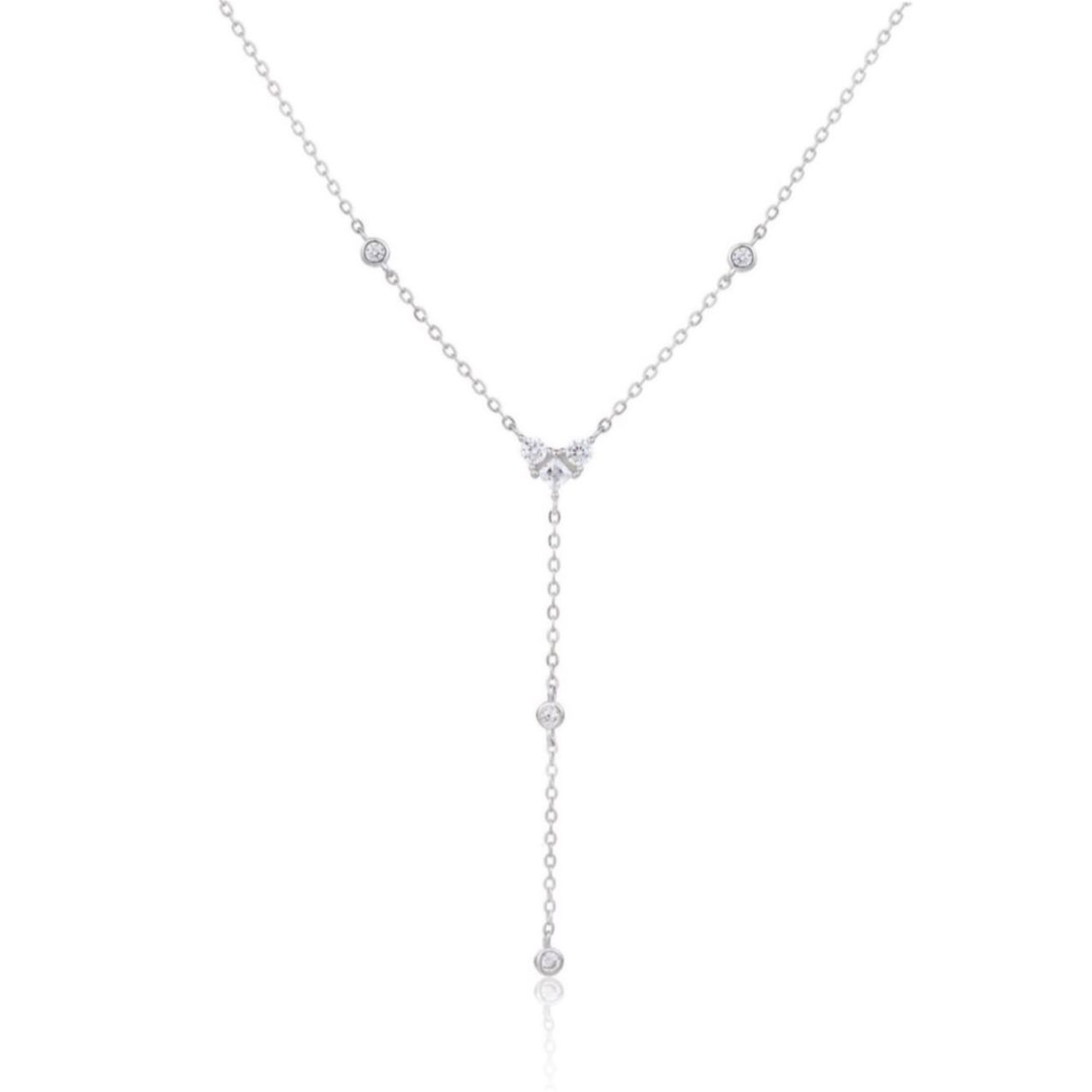שרשרת כסף 925 בציפוי רודיום איכותי, בעיצוב נשפך ועדין עם שיבוץ זירקונים נוצצים.